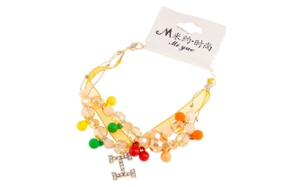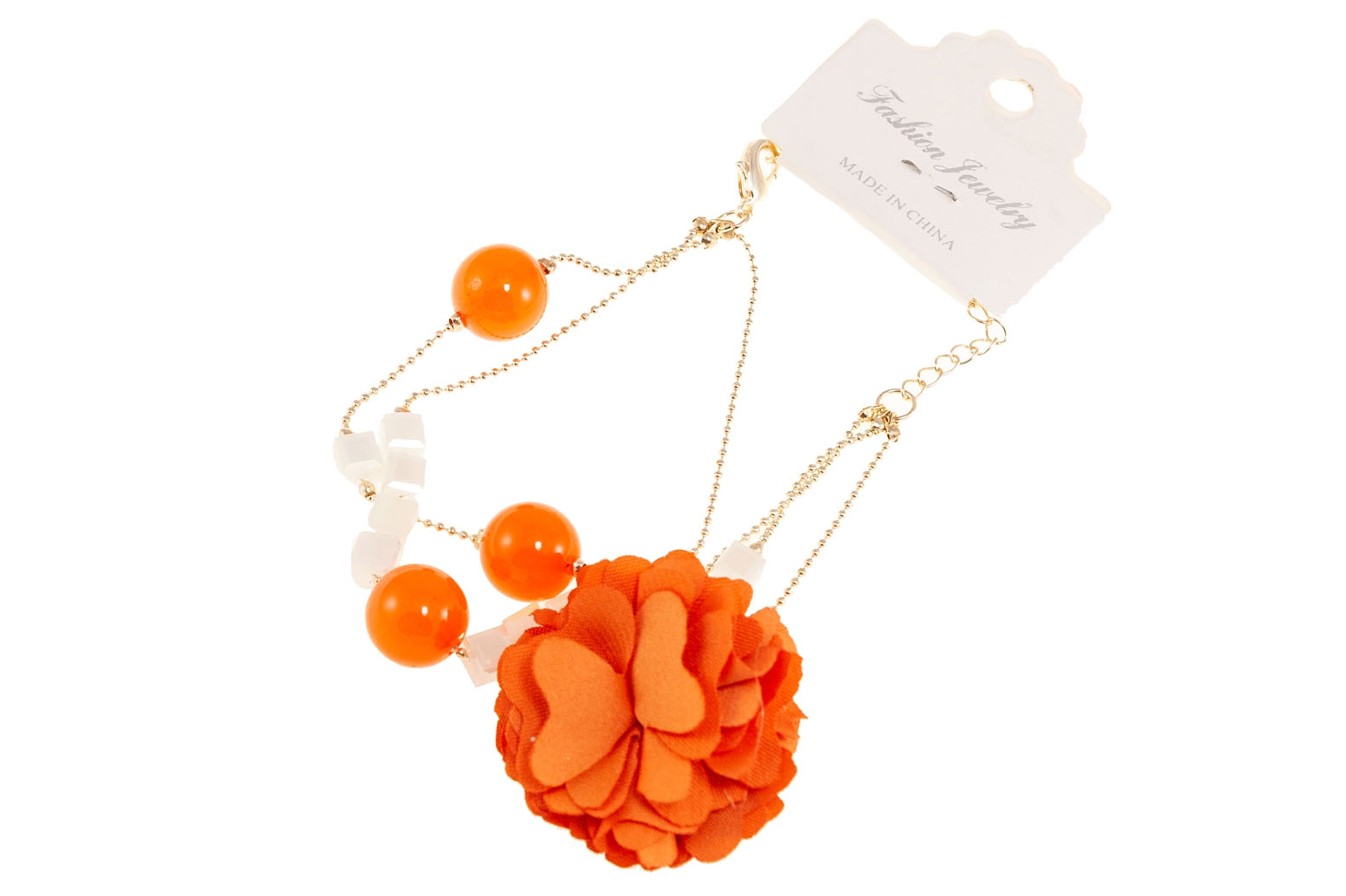 Oryginalna bransoletka wykonana z koralików i materiałowego, pomarańczowego kwiatka.Wymiary bransoletki: