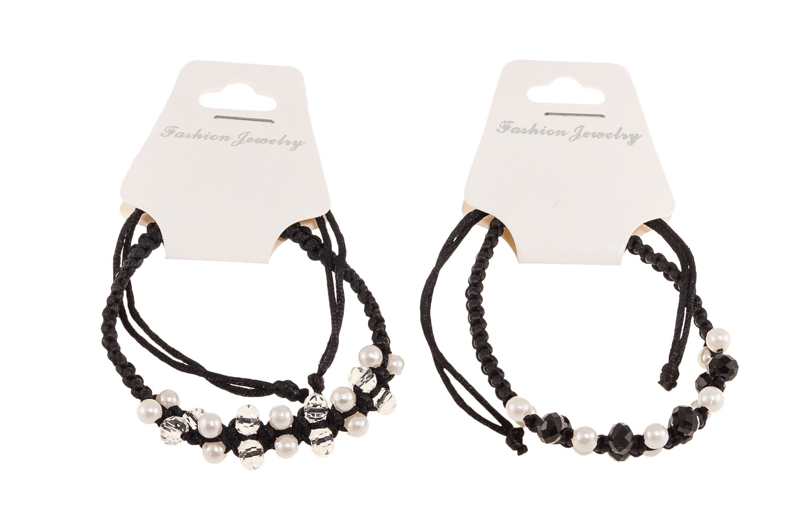 Pleciona bransoletka wykonana ze sznurka ozdobiona szlifowanymi koralikami i perełek.