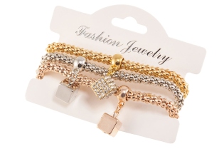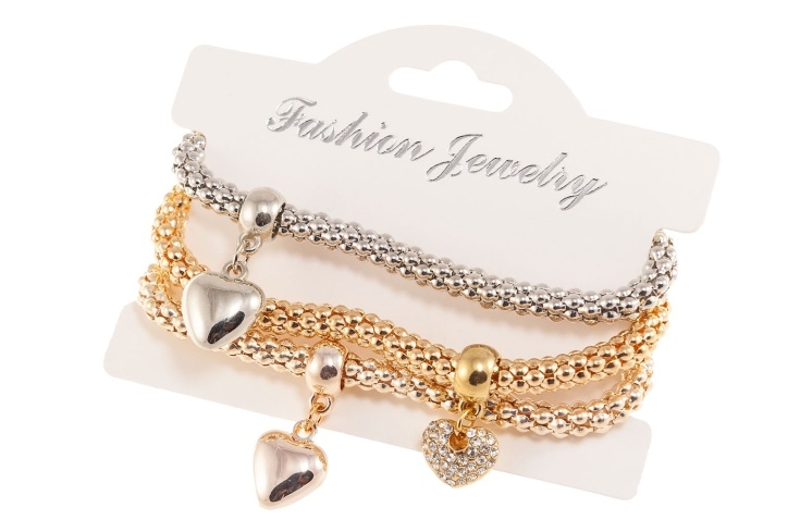 Oryginalna bransoletka z przywieszką w kształcie serduszka.Zestaw składa się z trzech kolorów: srebrny, złoty i różowe złoto.