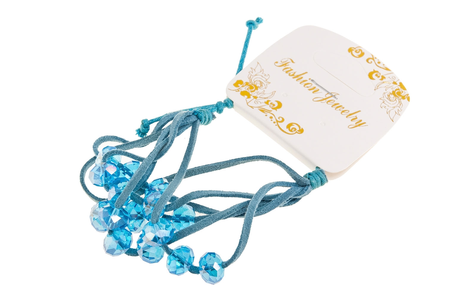 Bransoletka wykonana z rzemyka, ozdobiona szlifowanymi koralikami.Bransoletka w kolorze niebieskim.