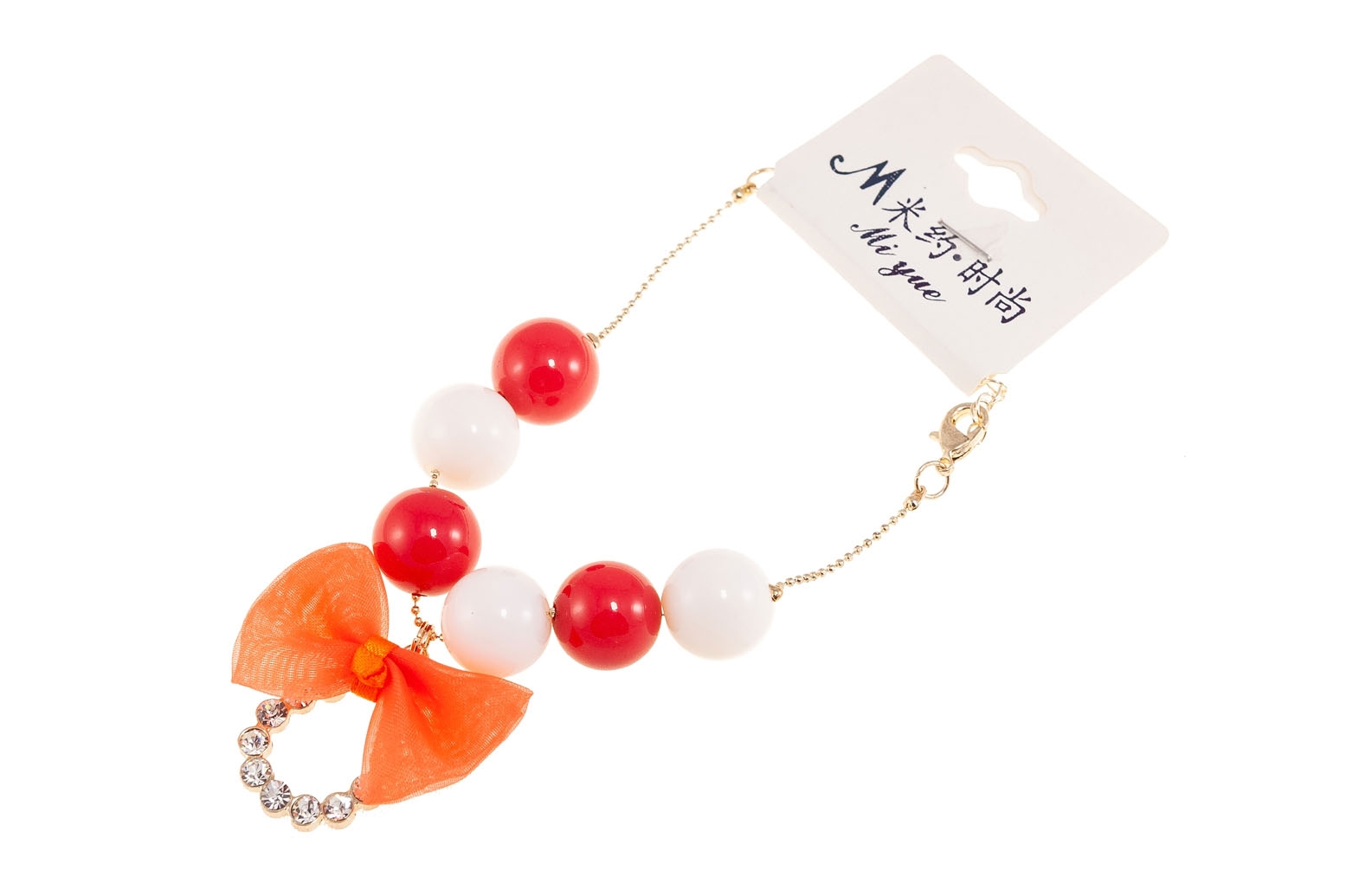 Urocza bransoletka składająca się koralików i delikatnej kokardki.