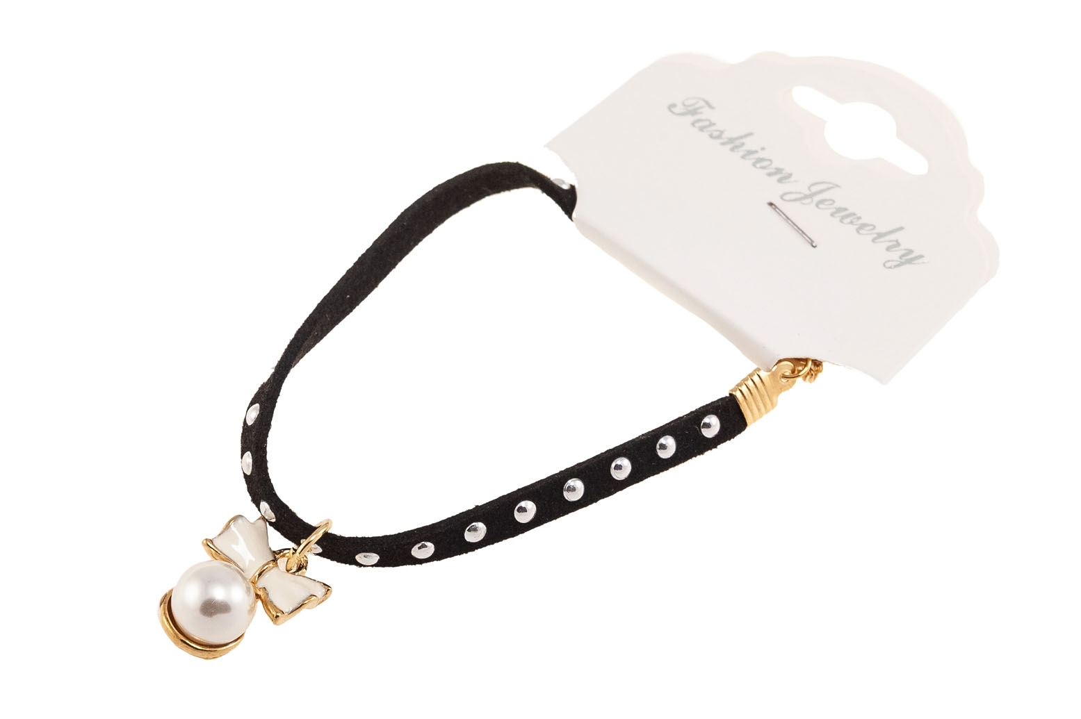 Urocza bransoletka składająca się czarnego rzemyka i delikatnej kokardki z perełką.Wymiary bransoletki: