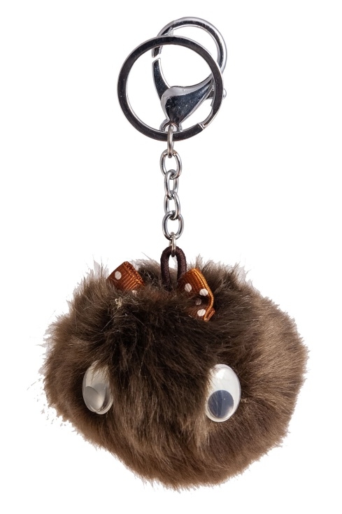 Uroczy, brązowy brelok w kształcie puszka z oczami i uroczą kokardką.