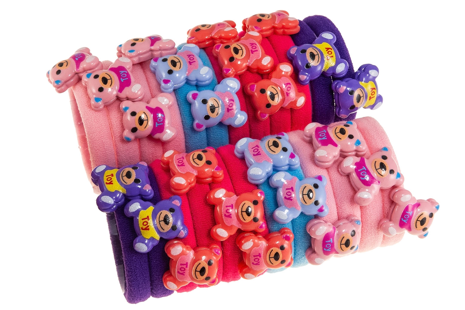 Klasyczne gumki do włosów z uroczą ozdobą w kształcie misia.
