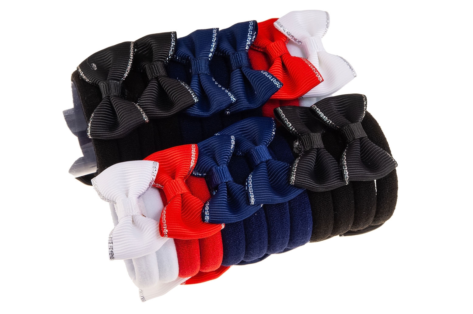 Klasyczne gumki do włosów z uroczymi, materiałowymi kokardkami.