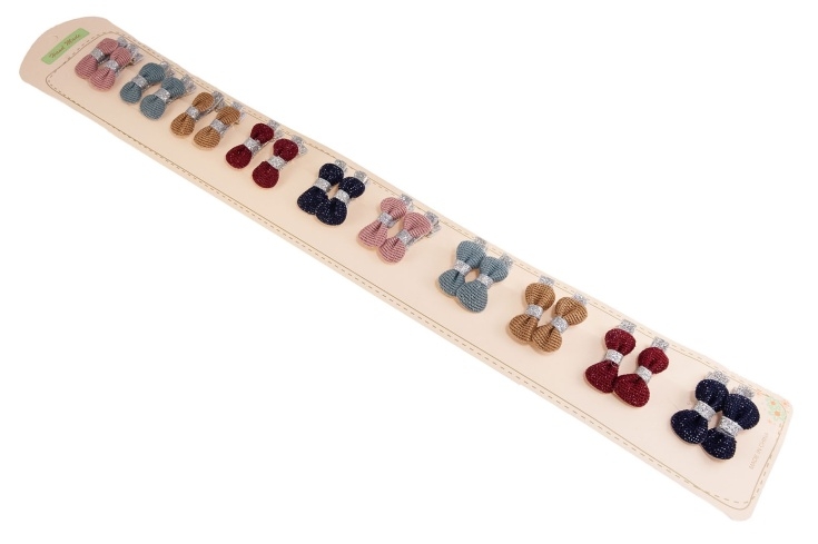 Górniak do włosów z uroczą ozdobą w kształcie kokardki.Zestaw składa się ze spinek w pięciu kolorach: granatowy, bordowy, beżowy, błękitny i różowy.