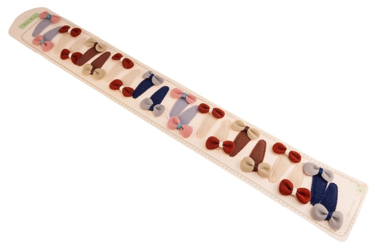 Spinki pokryte materiałem z uroczą ozdobą w kształcie kokardki.Zestaw składa się ze spinek w pięciu kolorach.