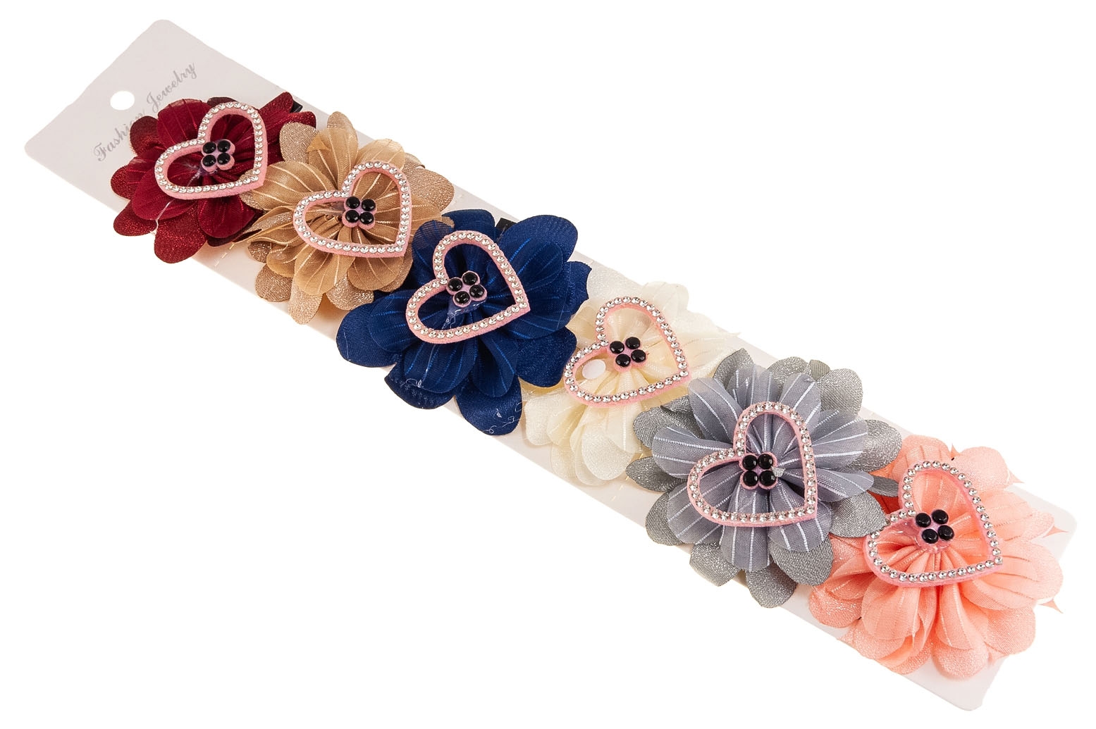 Zestaw składa się ze spinek w sześciu kolorach: bordowy, szary, brązowy, beżowy, granatowy i różowy.