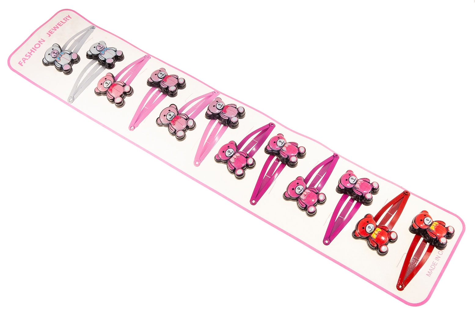 Klasyczne spinki do włosów z uroczą ozdobą w kształcie misia.Zestaw składa się ze spinek w czterech kolorach: czerwony, biały, jasny i ciemny różowy.