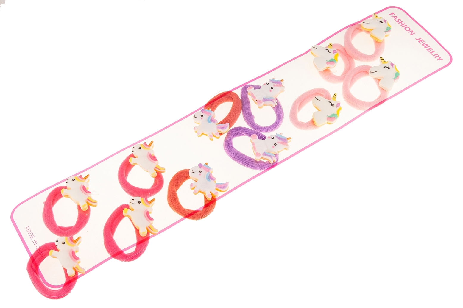 Klasyczne gumki do włosów z uroczą ozdobą w kształcie jednorożca.Zestaw składa się z gumek w czterech kolorach: fioletowy, morelowy, jasny i ciemny różowy.