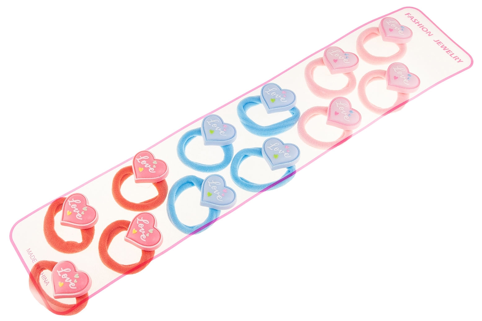 Klasyczne gumki do włosów z uroczą ozdobą w kształcie serduszka.Zestaw składa się z gumek w trzech kolorach: niebieski, czerwony i różowy.