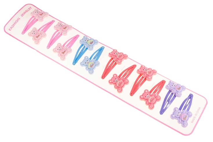 Klasyczne spinki do włosów z uroczą ozdobą w kształcie misia.