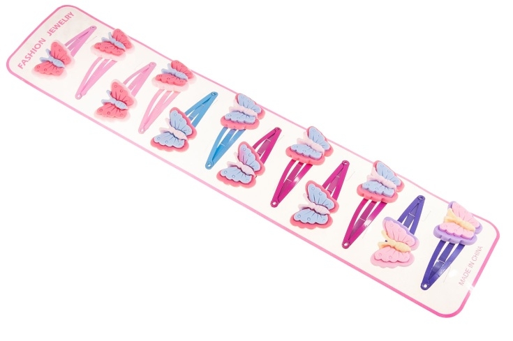 Klasyczne spinki do włosów z uroczą ozdobą w kształcie motylka.Zestaw składa się ze spinek w czterech kolorach: fioletowy, niebieski, jasny i ciemny różowy.