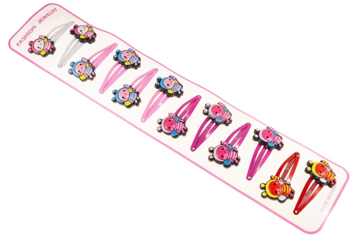 Klasyczne spinki do włosów z uroczą ozdobą w kształcie pszczółki.Zestaw składa się ze spinek w czterech kolorach: czerwony, biały, jasny i ciemny różowy.