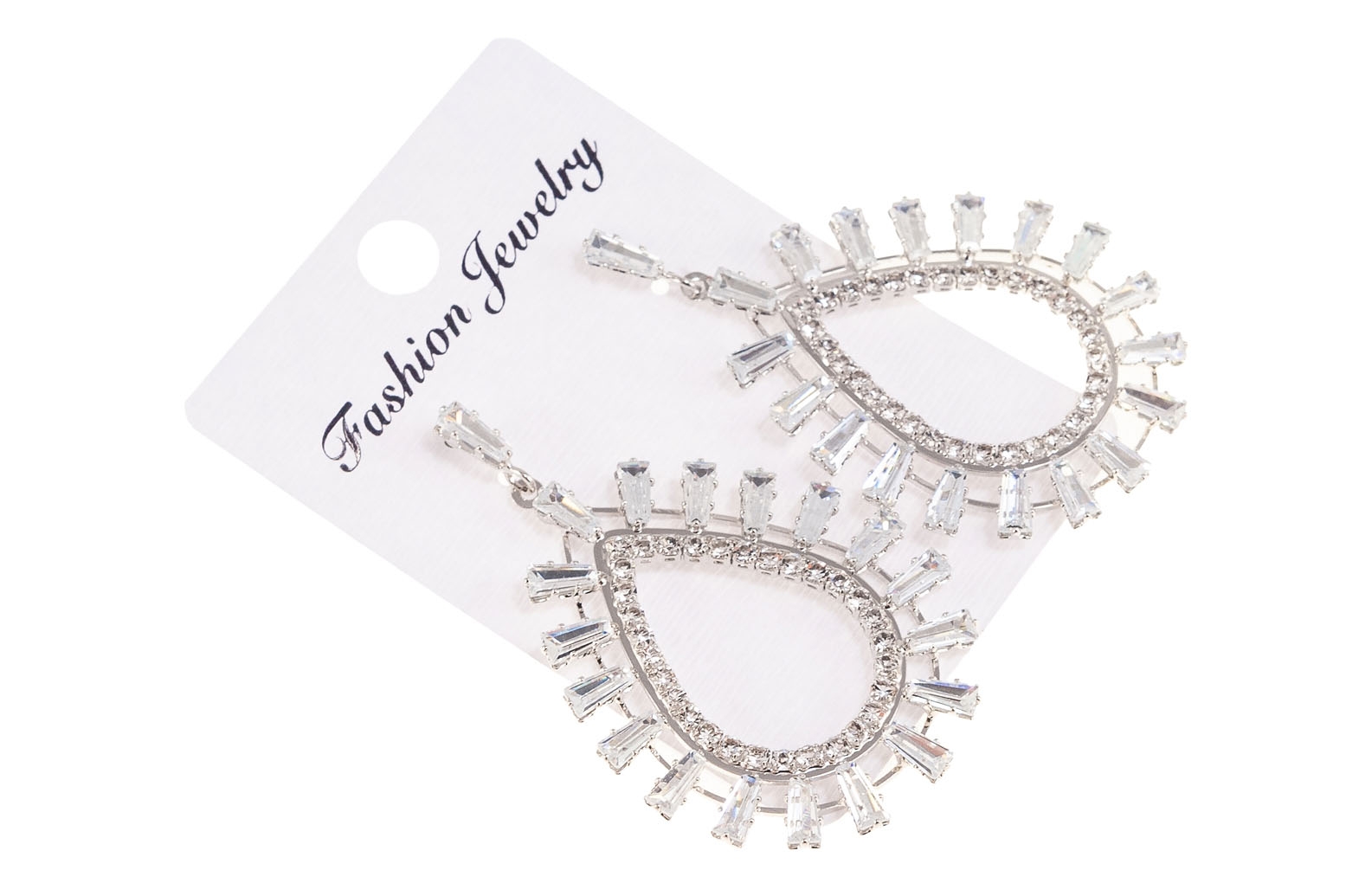 Modne w tym sezonie kolczyki.Długie kolczyki w kolorze srebrnym, ozdobione są pięknie mieniącymi się kamieniami.