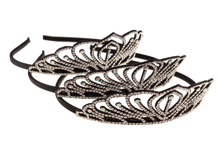 Elegancki diadem pokryty szlifowanymi kamieniami.