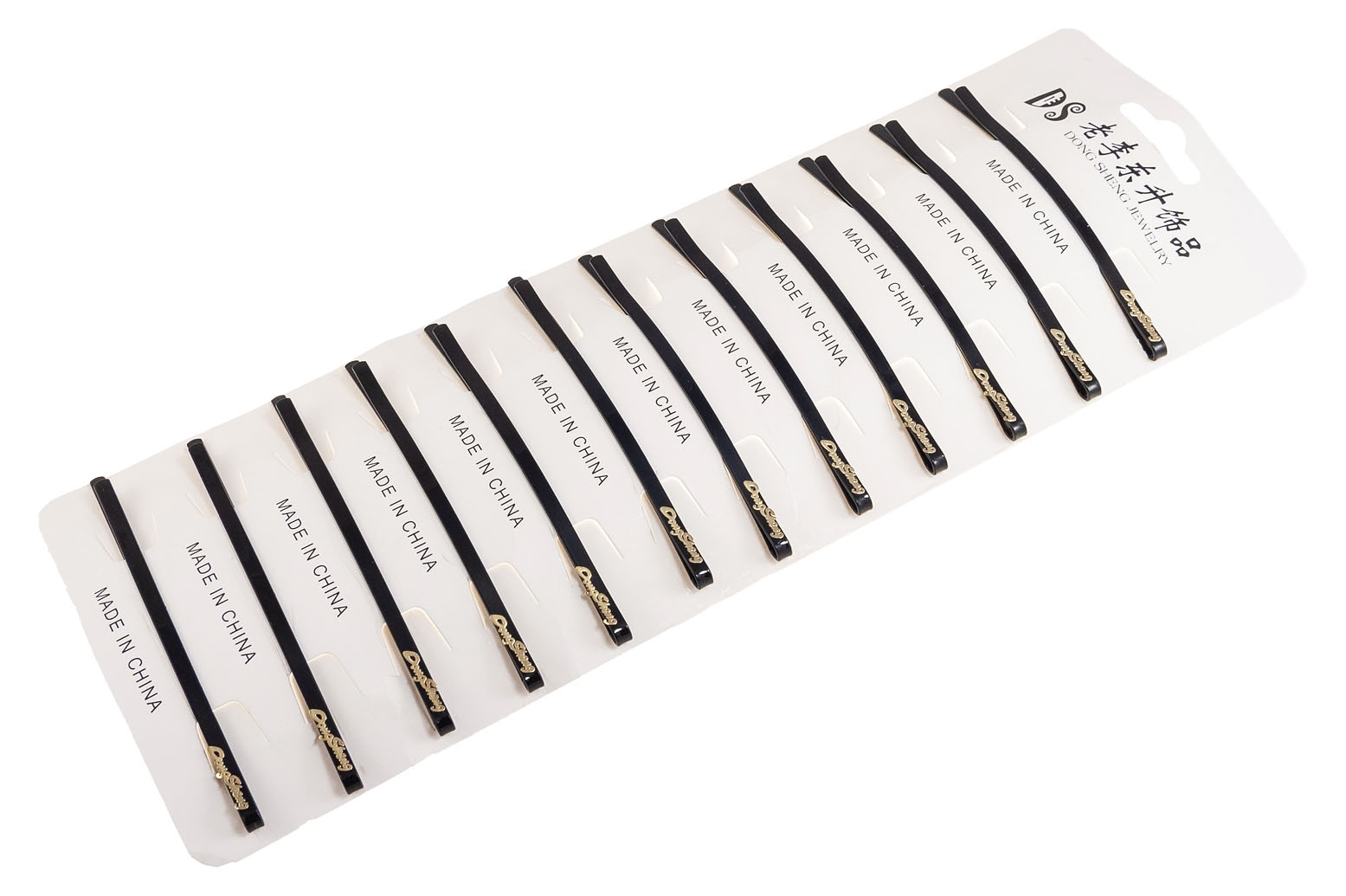 Klasyczne wsuwki do włosów, dobrze trzymają włosy.Na paletce jest dwanaście czarnych wsuwek ze złotym napisem