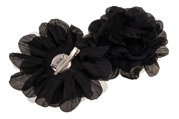 Elegancka ozdoba w kształcie kwiatka, wykonana z materiału. Ozdoba posiada dwa rodzaje zapięcia: broszka i górniak.