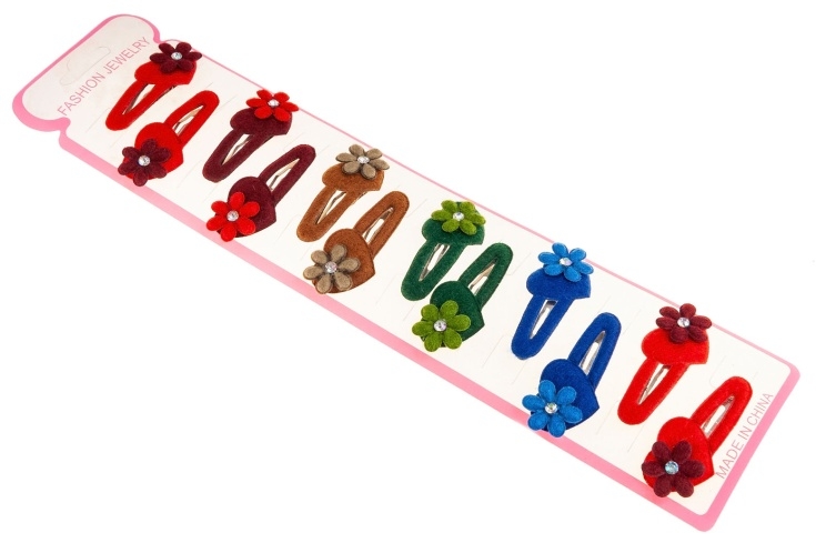 Klasyczne spinki do włosów z uroczą ozdobą w kształcie serduszka z kwiatkiem.Zestaw składa się z pięciu kolorów: czerwony, bordowy, brązowy, zielony i niebieski.