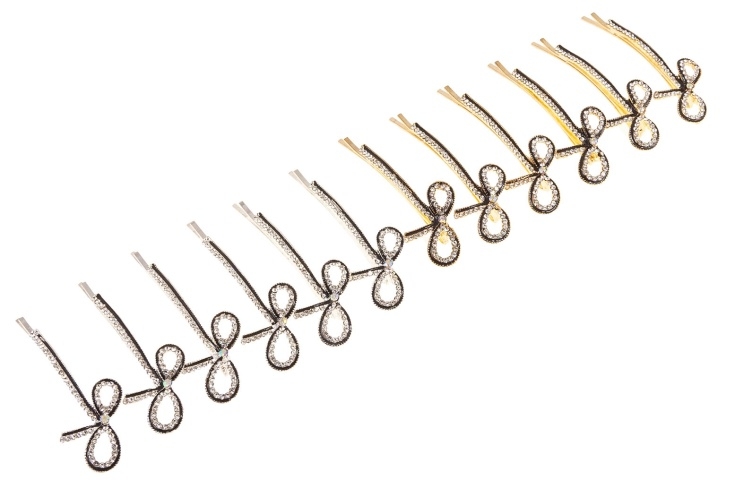 Klasyczne wsuwki do włosów, dobrze trzymają włosy. Wsuwki ozdobione są błyszczącymi, szlifowanymi kamieniami.Zestaw składa się z srebrnych i złotych wsuwek.