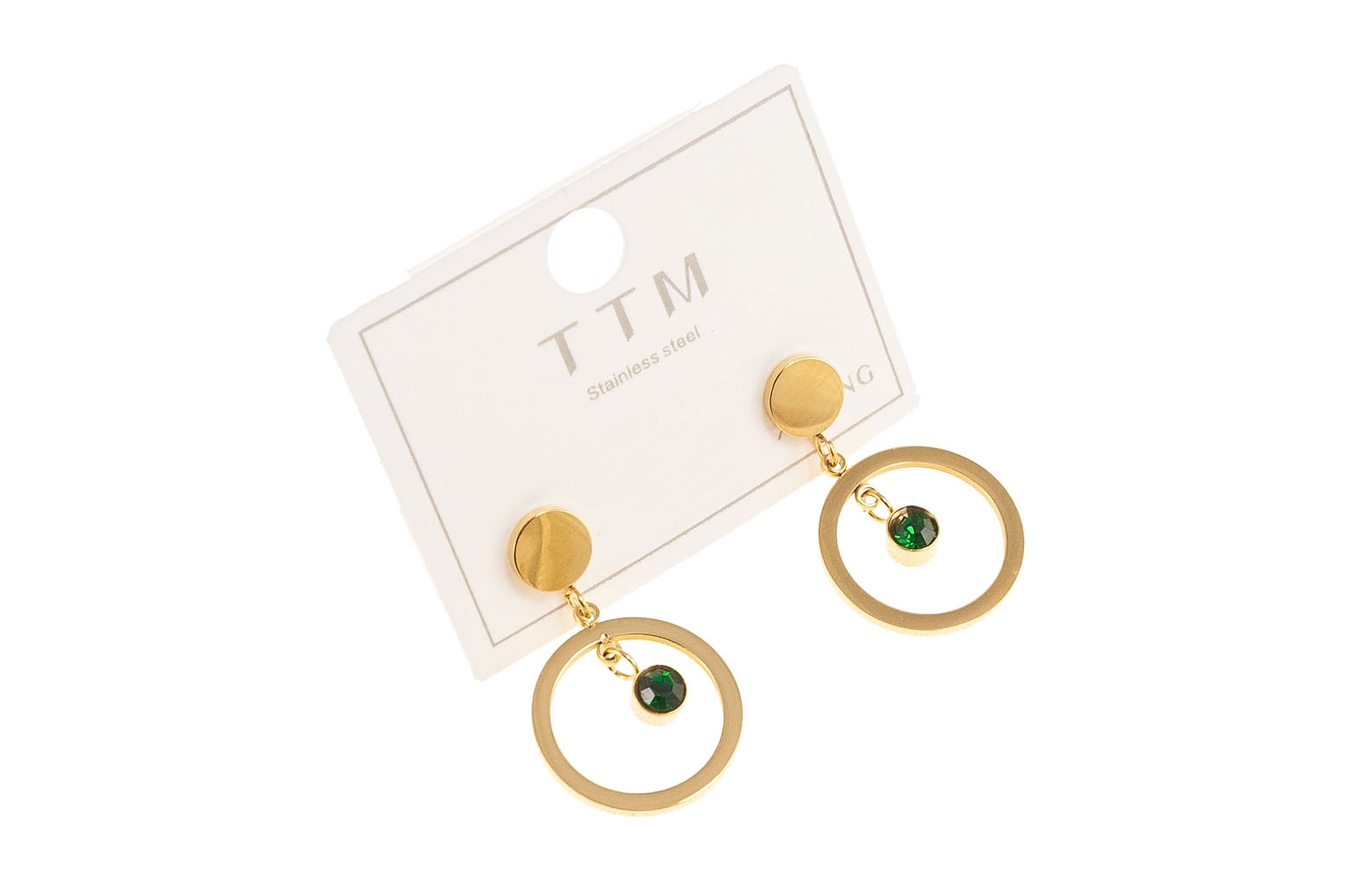 Eleganckie, złote kolczyki ozdobione zielonymi, szlifowanymi kamieniami.Wymiary kolczyków: