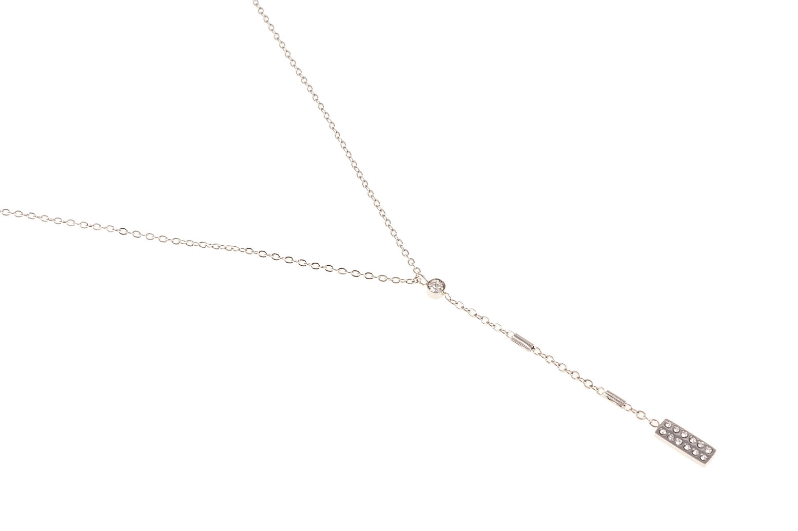 Elegancki, srebrny łańcuszek z uroczą przywieszką ozdobiona szlifowanym kamieniem.Wymiary naszyjnika: