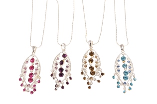 Naszyjnik ozdobiony pięknymi, kolorowymi dżetami.