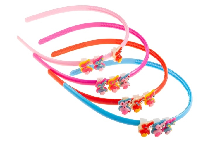 Klasyczna opaska wykonana z dobrego materiału, ozdobiona motylkami.Zestaw składa się z czterech kolorów: czerwony, niebieski, jasny i ciemny różowy.