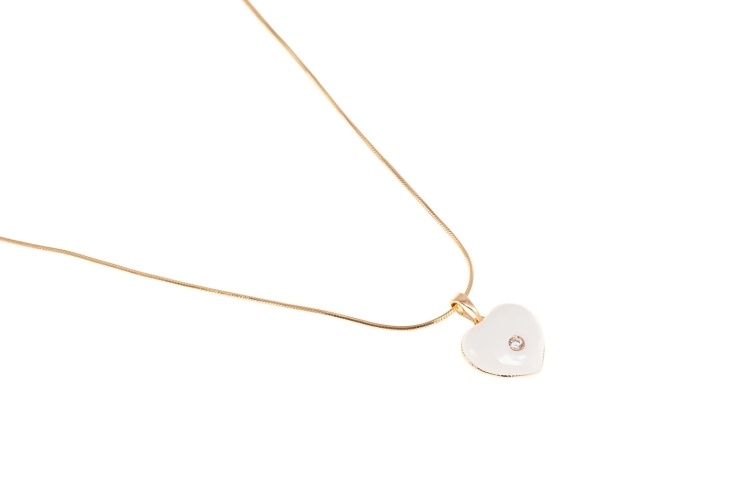 Elegancki, złoty łańcuszek z uroczą przywieszką w kształcie serca w kolorze białym.Wymiary naszyjnika: