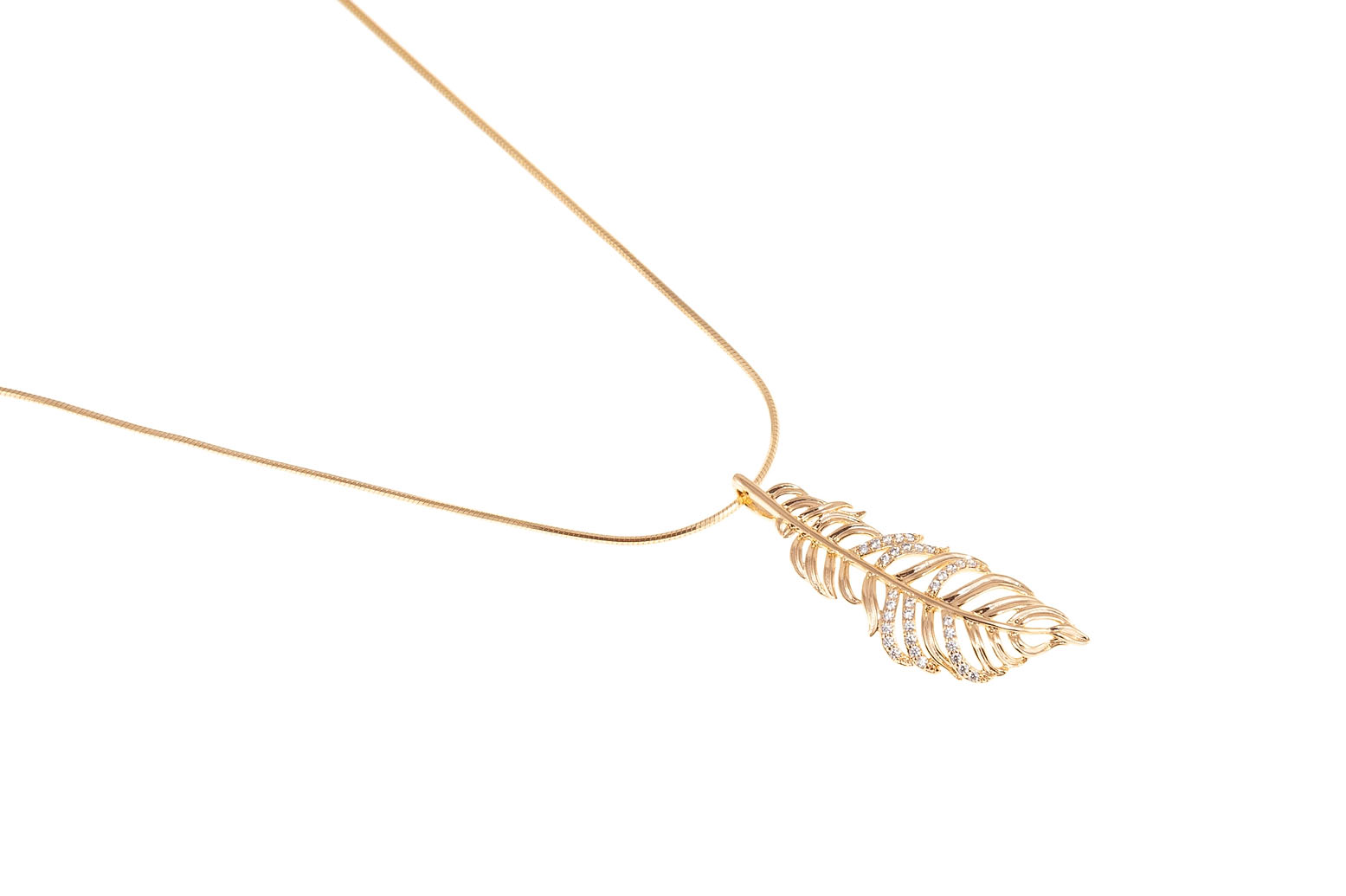 Delikatny złoty naszyjnik z piórkiem