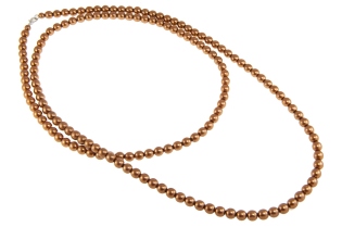 Oryginalny naszyjnik składający się z brązowych rzemyków i ozdobnego metalu w srebrnym i złotym kolorze.