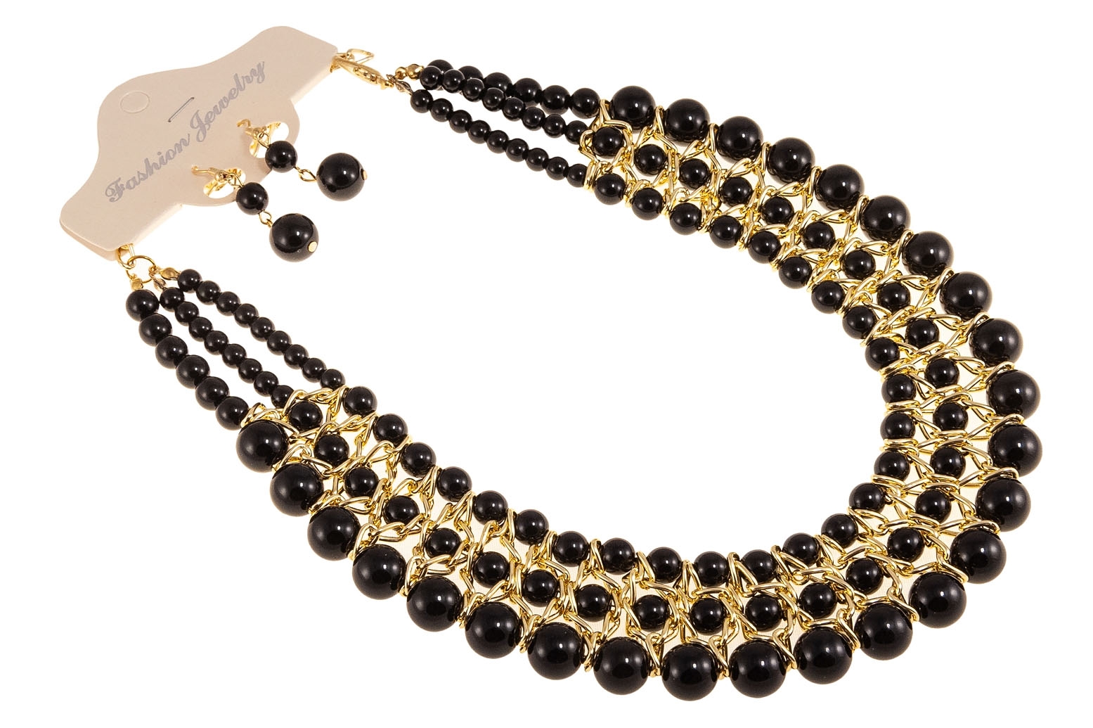 Oryginalny naszyjnik wykonany z czarnych koralików, do naszyjnika dodane są pasujące kolczyki.Wymiary łańcuszka: