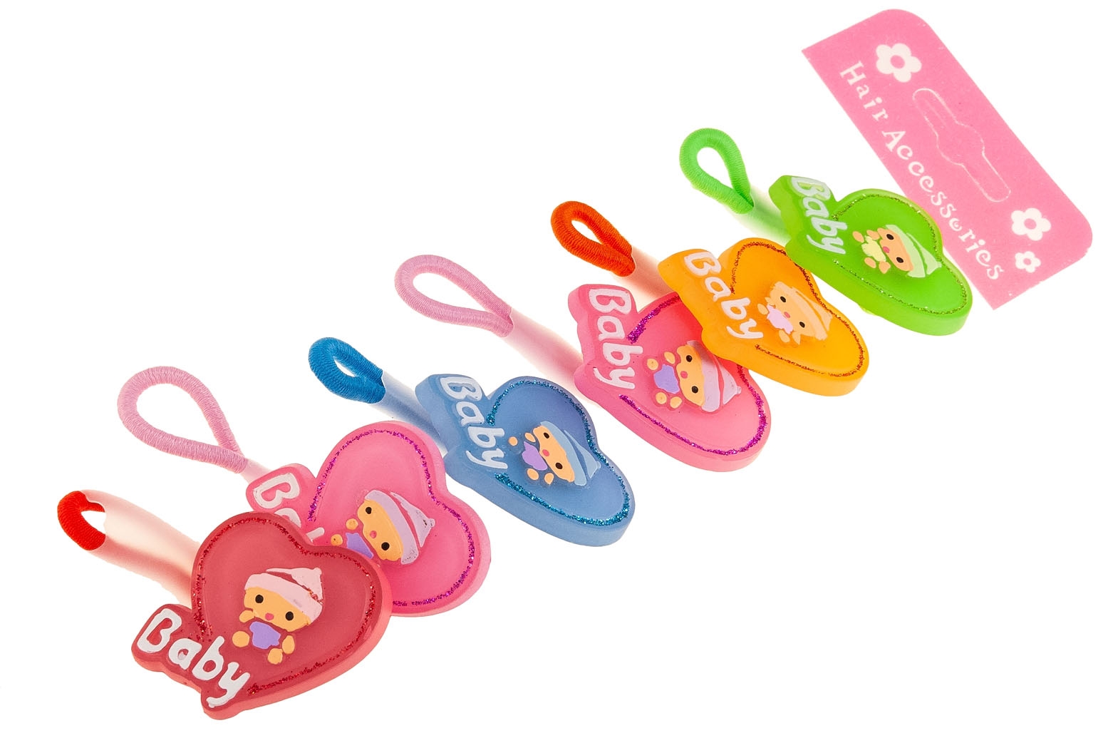 Klasyczne gumki do włosów z uroczą ozdobą w kształcie serca.Zestaw składa się z sześciu kolorów: czerwony, różowy, niebieski, pomarańczowy i zielony.