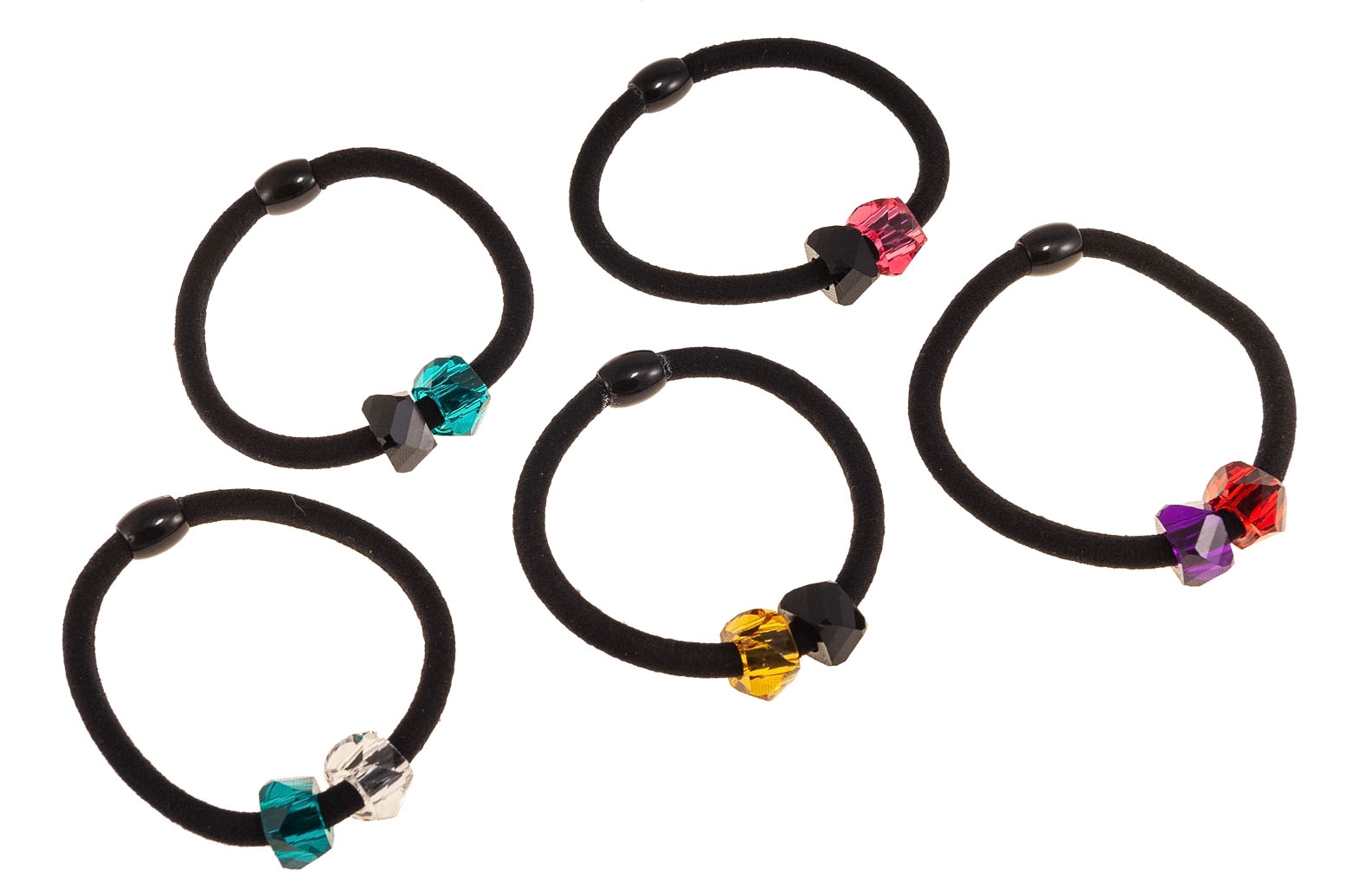 Klasyczne czarne gumki do włosów, ozdobione szlifowanymi koralikami.