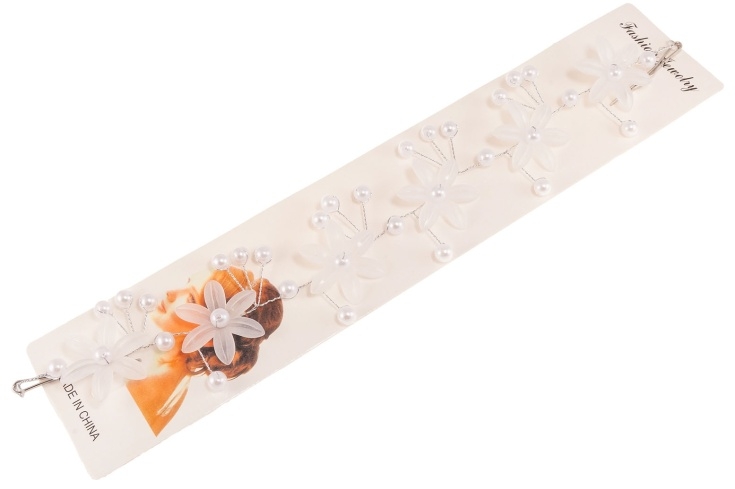 Elegancka ozdoba do włosów ozdobiona uroczymi kwiatkami i perełkami.