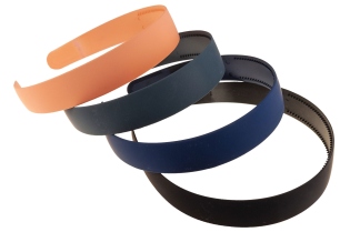 Opaska pokryta materiałem, ozdobiona materiałową kwiatkami.