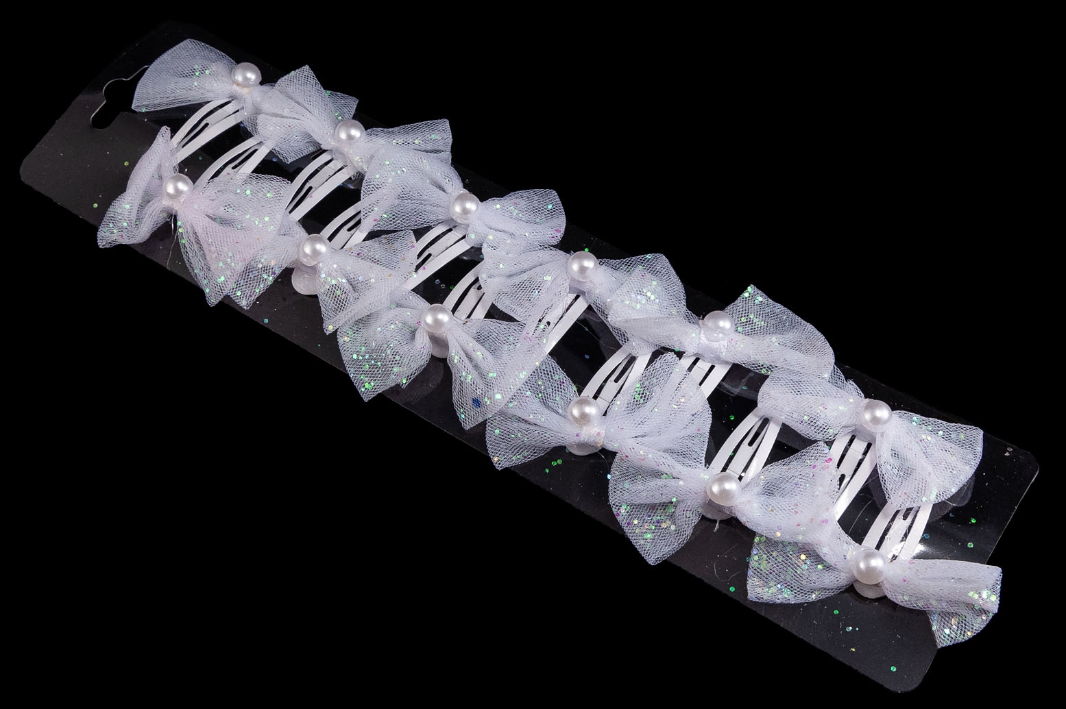 Klasyczne spinki do włosów z uroczą ozdobą w kształcie kokardki.Zestaw składa się ze spinek w białym kolorze.