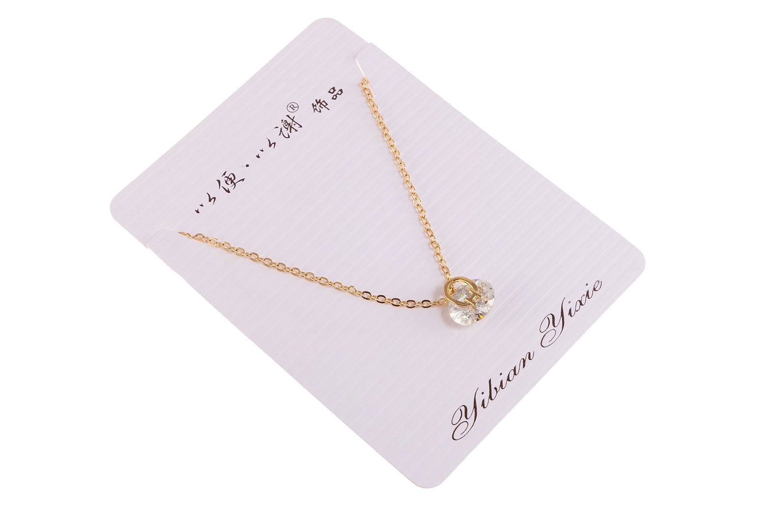 Naszyjnik w kolorze złotym, ozdobiony pięknie mieniącym się kamieniem.
