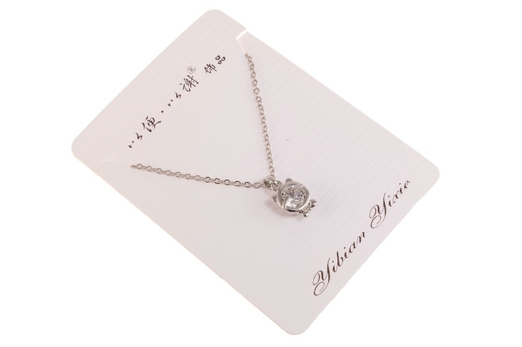 Elegancki łańcuszek z delikatną przywieszką w kształcie kotka.Naszyjnik w kolorze srebrnym, ozdobiony pięknie mieniącym się kamieniem.