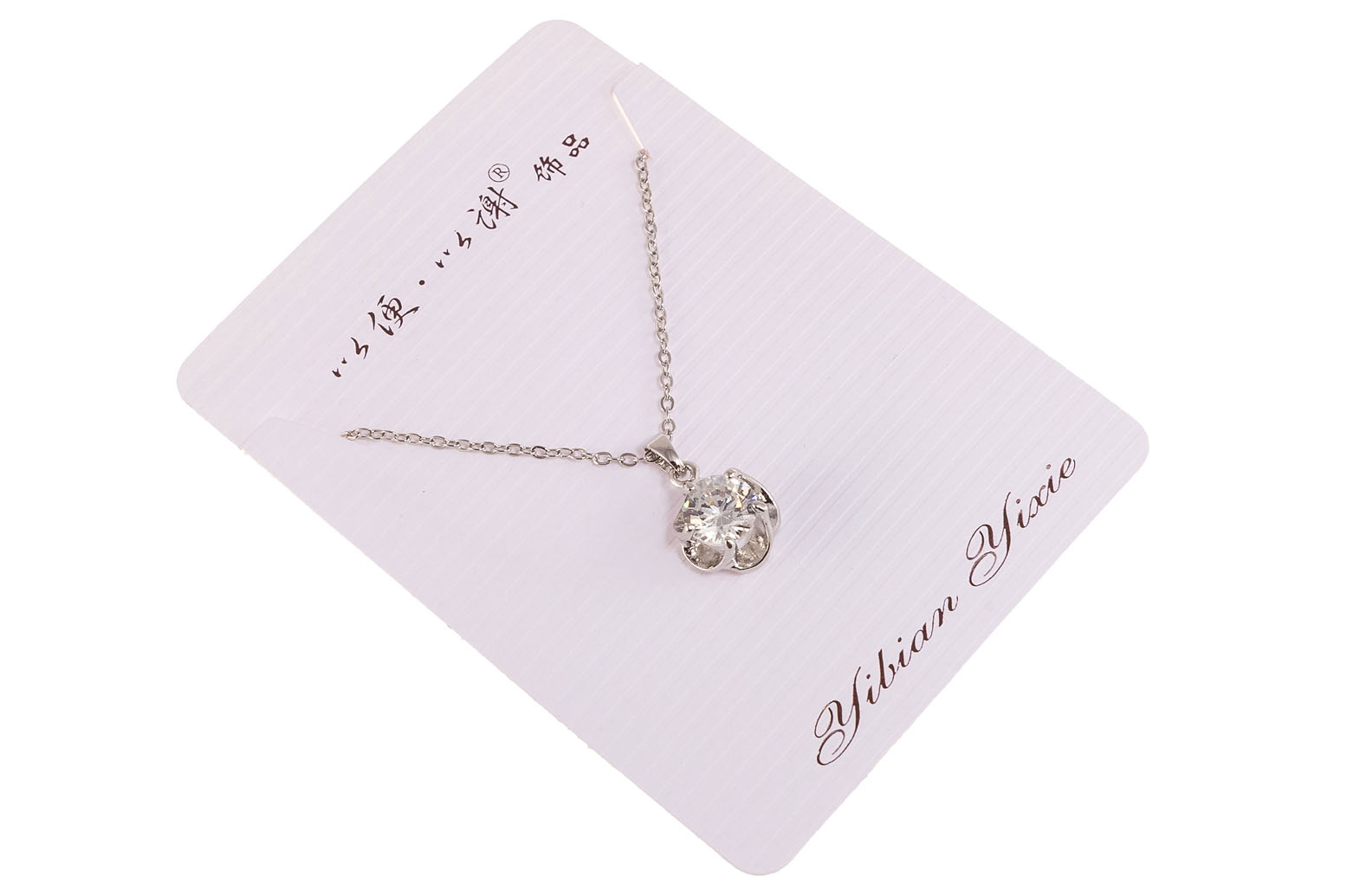 Elegancki łańcuszek z delikatną przywieszką w kształcie kwiatka.Naszyjnik w kolorze srebrnym, ozdobiony pięknie mieniącym się kamieniem.