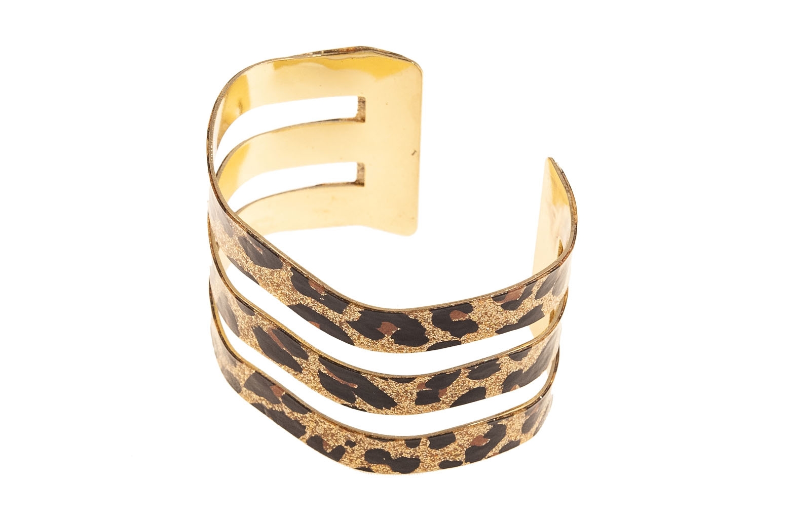Oryginalna bransoletka ozdobiona panterką.Bransoletka w kolorze złotym, brązowym i czarnym.