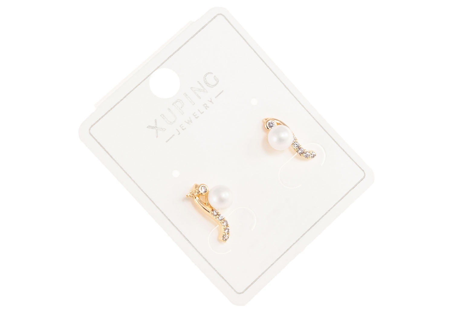 Eleganckie, złote kolczyki ozdobione dżetami i perełką.Wymiary kolczyków:
