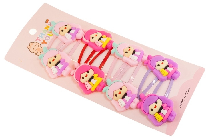 Klasyczne spinki do włosów z uroczą ozdobą w kształcie laleczki.Zestaw składa się z czterech kolorów: różowy, czerwony, różowy i fioletowy.