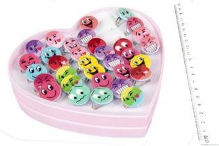 Komplet zapakowany w urocze pudełko w kształcie serduszka.