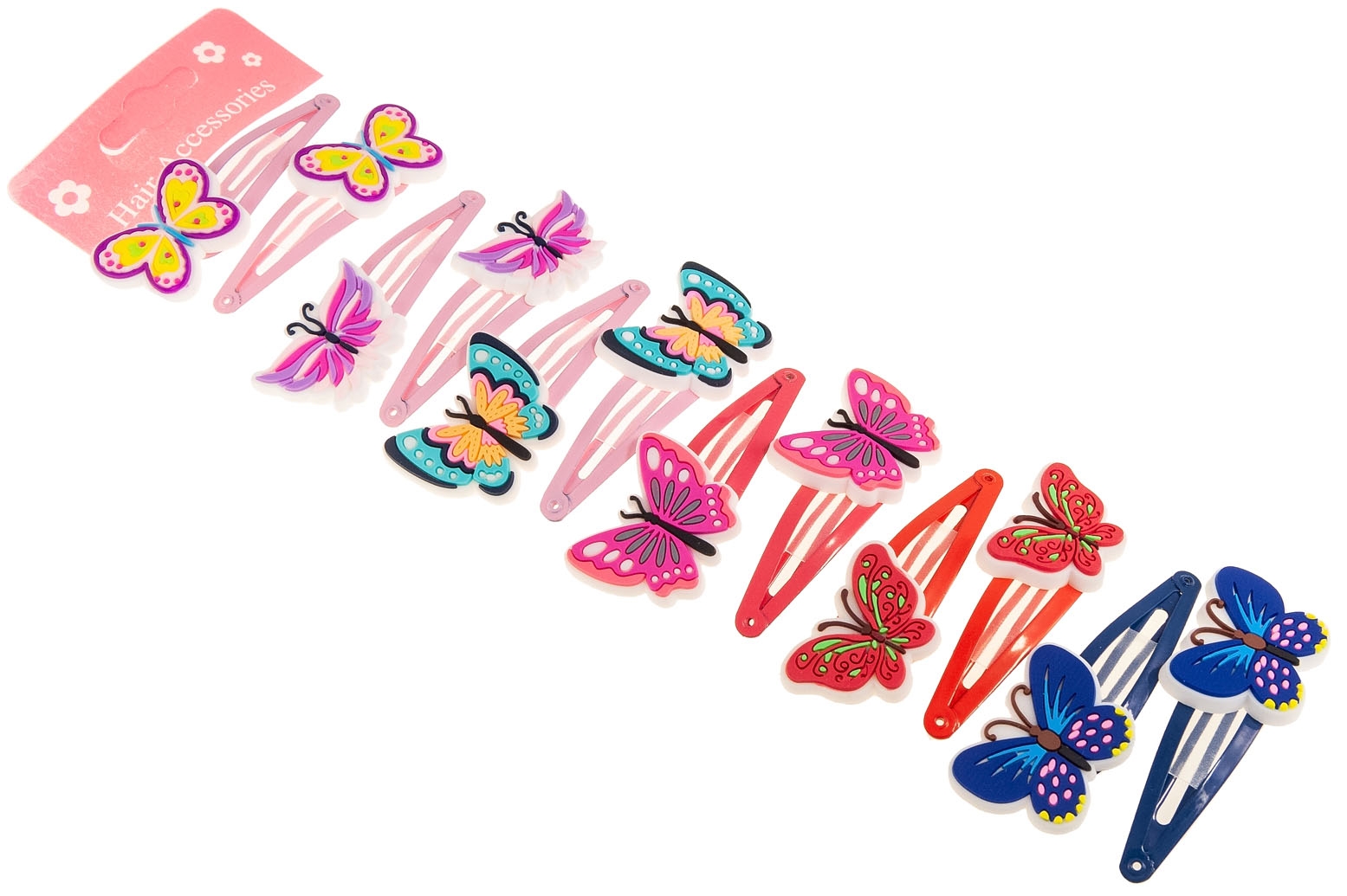 Klasyczne spinki do włosów z uroczą ozdobą w kształcie motyla.Zestaw składa się z czterech kolorów: czerwony, granatowy, jasny i ciemny różowy.