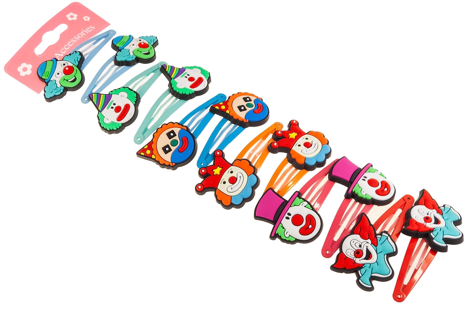 Klasyczne spinki do włosów z uroczą ozdobą w kształcie klauna.