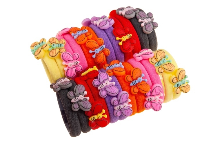 Klasyczne gumki do włosów z uroczą ozdobą w kształcie motyla.