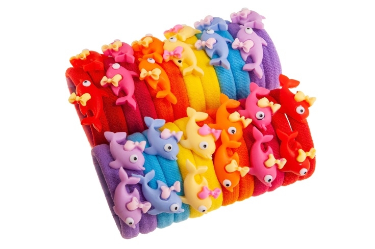 Klasyczne gumki do włosów z uroczą ozdobą w kształcie delfinka.