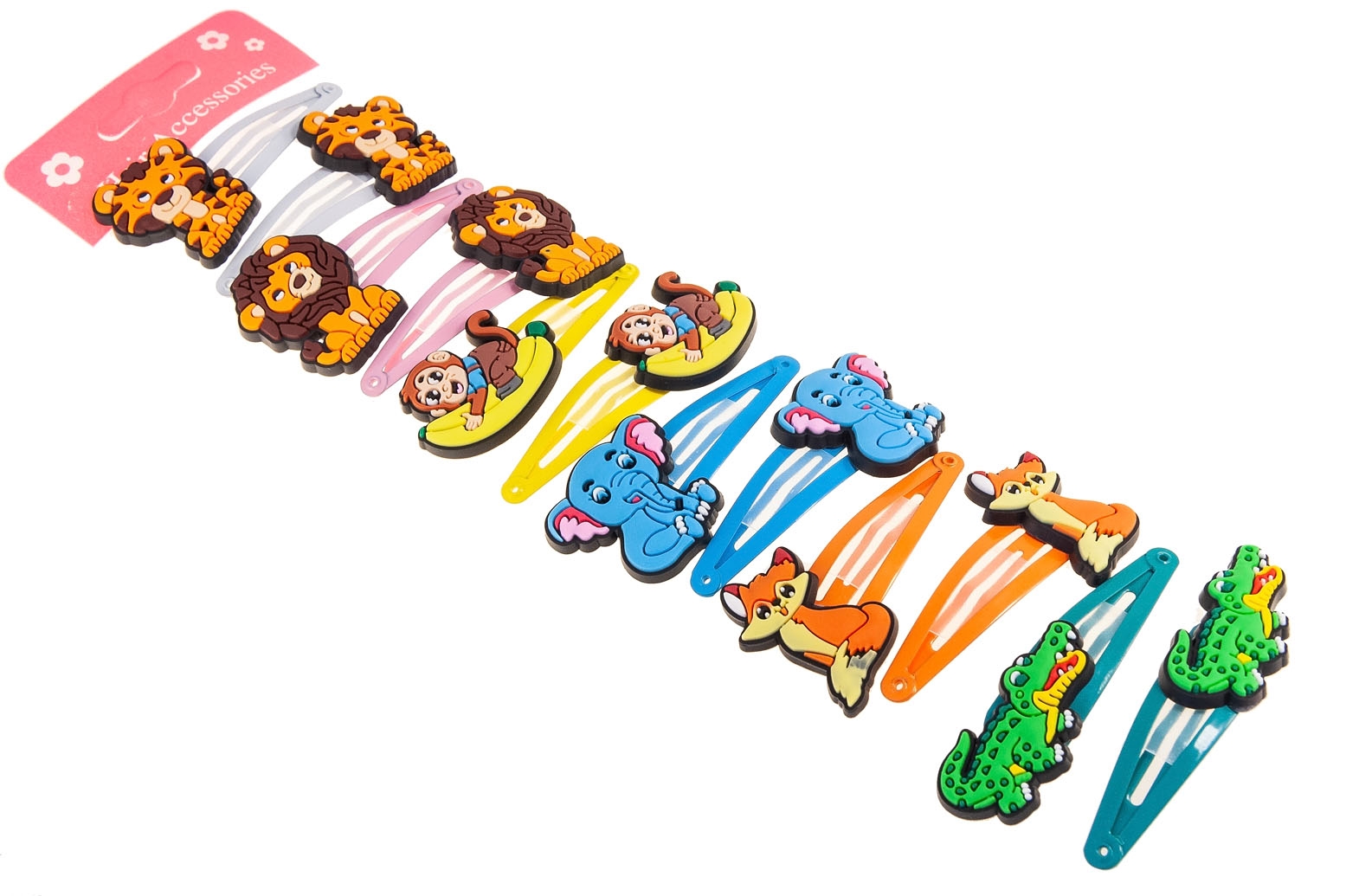 Klasyczne spinki do włosów z uroczą ozdobą w kształcie zwierząt.Zestaw składa się z sześciu kolorów: biały, różowy, żółty, niebieski, pomarańczowy i zielony.