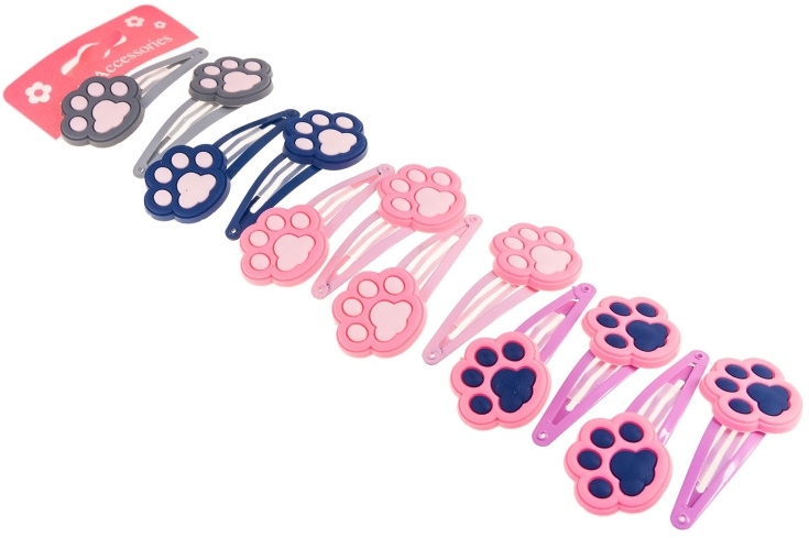 Klasyczne spinki do włosów z uroczą ozdobą w kształcie łapek.Zestaw składa się z czterech kolorów: szary, granatowy, jasny i ciemny różowy.